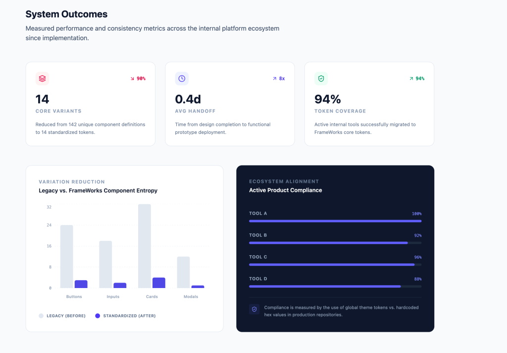 Multiple teams were shipping UI with inconsistent spacing, color usage, and component logic. The problem wasn’t creativity — it was entropy.